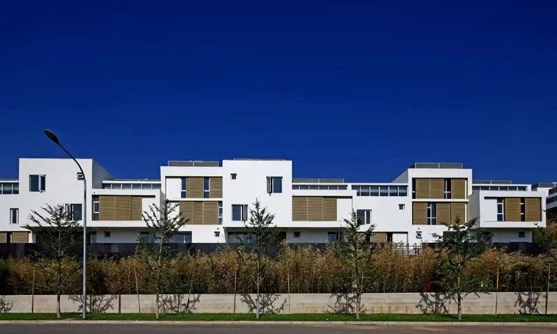 《中間建筑》項(xiàng)目最初的名字為“西山藝術(shù)家工坊”,處于京城西郊四環(huán)路與五環(huán)路之間的一片廣闊的場(chǎng)地上,和香山與頤和園遙遙相望。整個(gè)建筑呈現(xiàn)集成化的布局方案,包含了共90間獨(dú)立工作室間間相靠,連接成環(huán),內(nèi)部設(shè)有樓梯與樓上休息空間相連,呈復(fù)式布局。同時(shí)空間下大上小,突出了創(chuàng)作的性質(zhì),也讓其與居住空間有了區(qū)別。