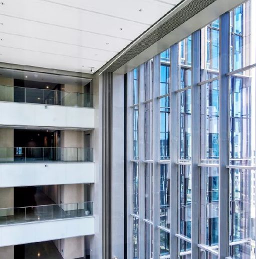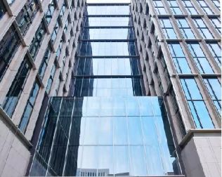 同時,在LOW-E中空玻璃增加了雙銀涂層工藝,領(lǐng)超傳統(tǒng)玻璃隔熱率30%,且幕墻上大面積使用4200mm×1800mm超大整塊單元體,使豐科中心外立面一體性和視覺通透性極佳,營造舒適的辦公環(huán)境。