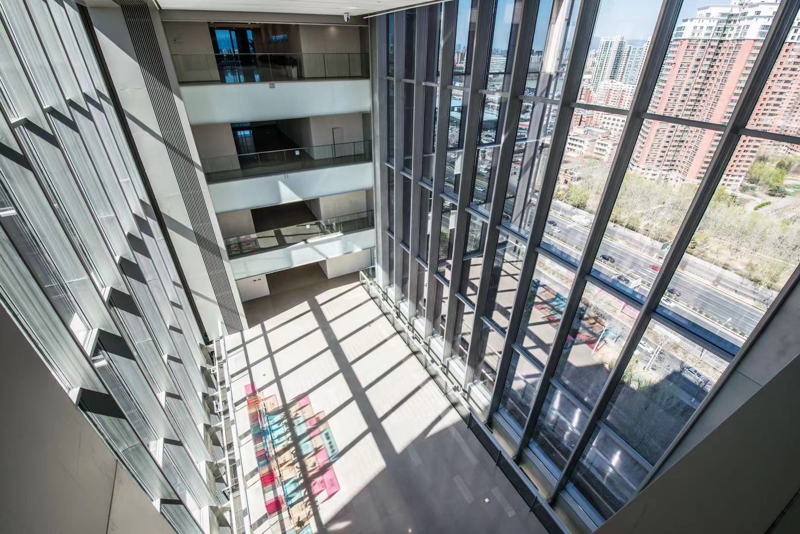 豐科中心采用無柱化空間設(shè)計,承重柱與玻璃幕墻相融合,樓體挺拔大氣,環(huán)保玻璃幕墻肌理豐富。