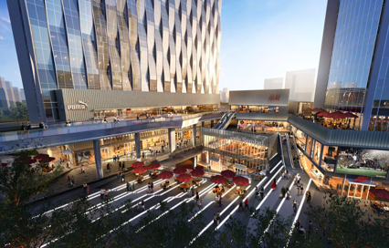 景觀通道從通惠河一直延伸至保利04地塊,營(yíng)造了一個(gè)統(tǒng)一的公共范圍,提供了充足的開放空間,室外休閑及活動(dòng)區(qū)域。內(nèi)部商業(yè)街與此平行,創(chuàng)造了一種商業(yè)購(gòu)物的氛圍和高端餐飲區(qū)域。地上步行連橋則與兩塊地塊相連,創(chuàng)造立體的購(gòu)物環(huán)境。商業(yè)裙房與景觀廣場(chǎng)密切相連,為通州核心位置打造了舒適一流的商業(yè)體驗(yàn)。
