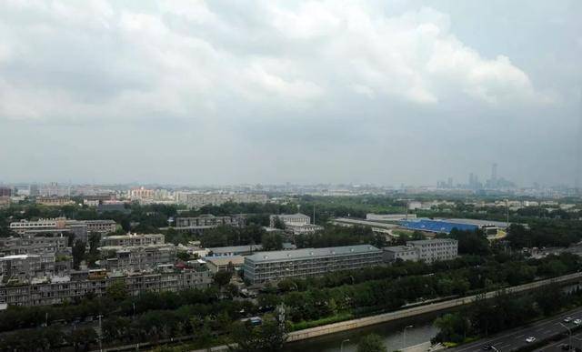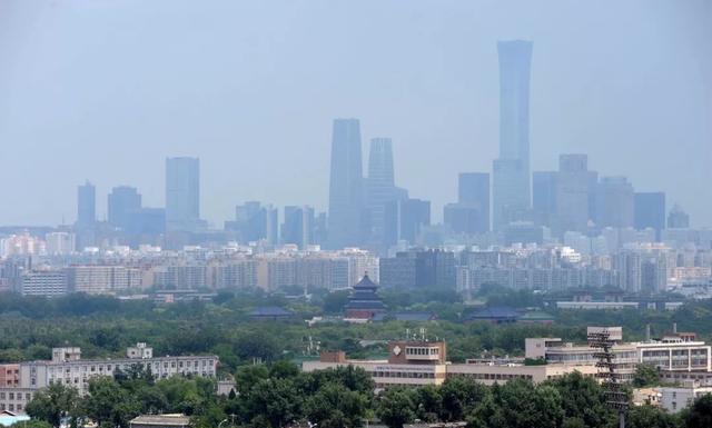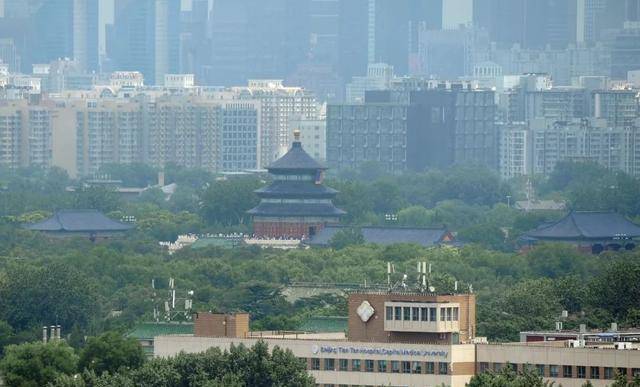 此圖是祈年殿背后的國(guó)貿(mào)建筑群