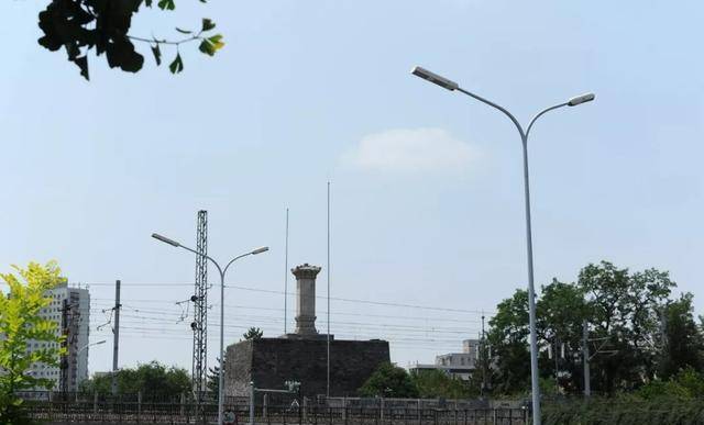 城樓下的廣場(chǎng),周邊環(huán)繞的是南二環(huán)永定門立交橋的匝道,廣場(chǎng)以南,是幾段向下走的臺(tái)階,基本就到了公園的盡頭。從這里可以看到南邊鐵路橋旁,有一座臺(tái)基,上面是并不算高的石柱。這個(gè)地方叫做“燕墩”,也叫“煙墩”。元明時(shí)期,北京有“五鎮(zhèn)”之說,燕墩就是南方之鎮(zhèn),有烽火臺(tái)的職能,如今上面立有乾隆御制碑。這里也算是元代城墻的遺留標(biāo)志物。