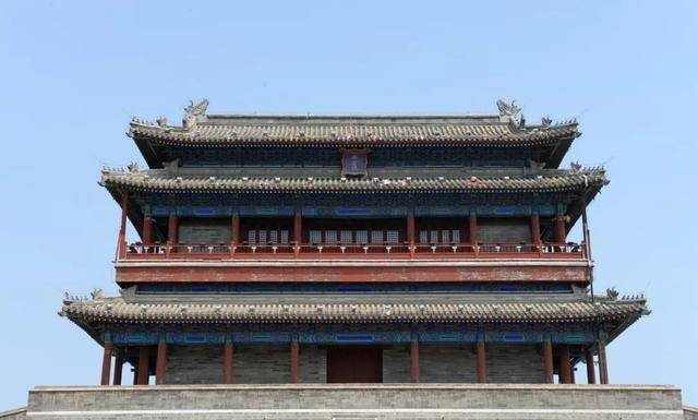 城樓為重檐歇山三滴水樓閣式建筑,灰色瓦,面闊五間,進(jìn)深三間