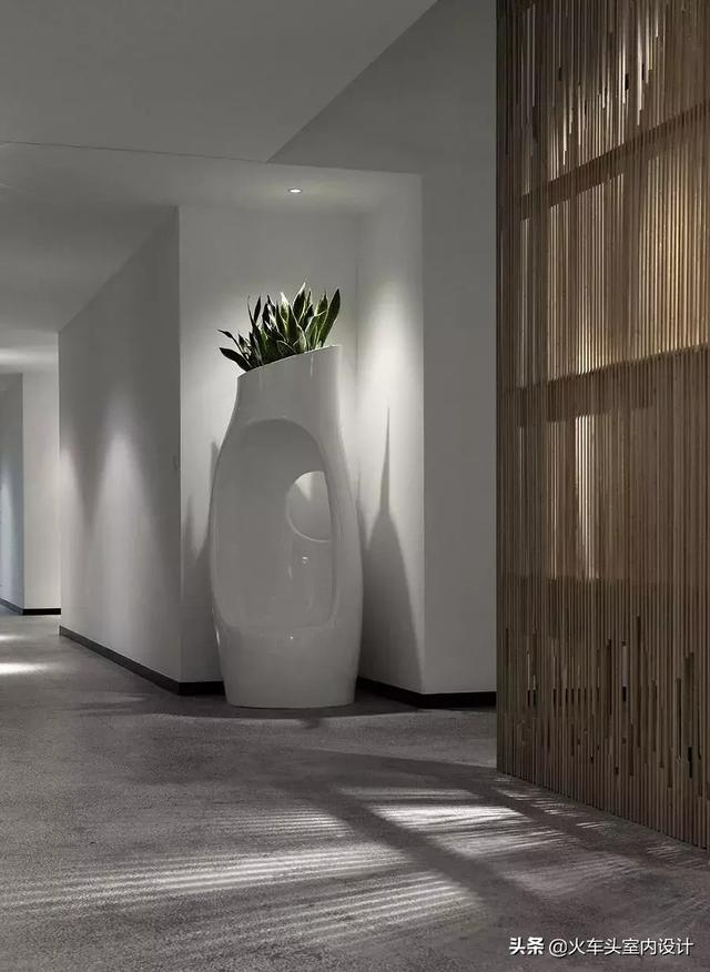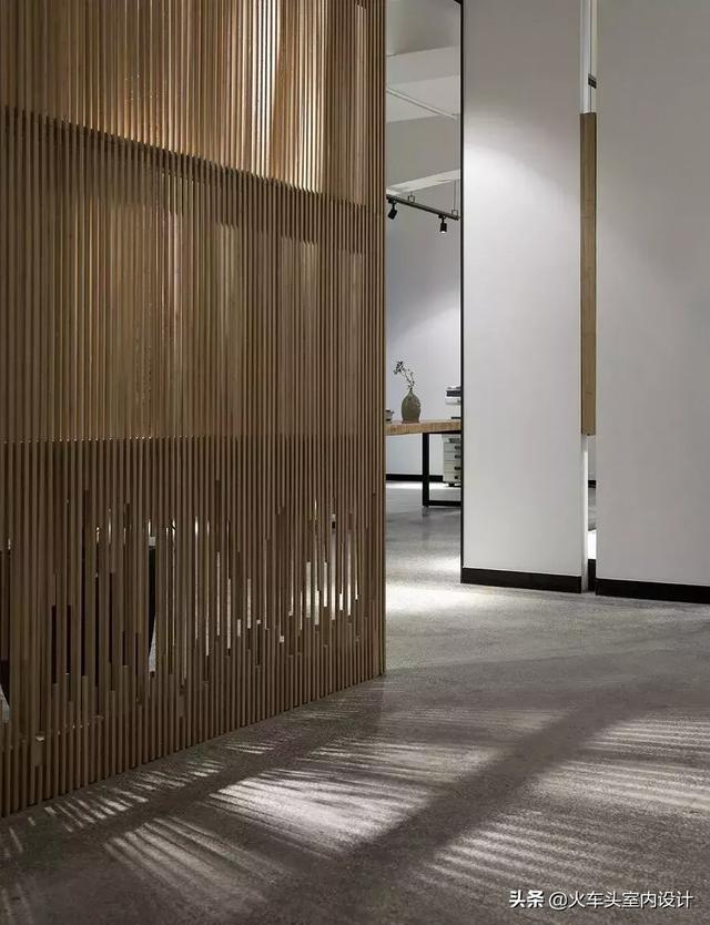 本案設(shè)計整體以白色為主色調(diào)在保留了原有廠房水磨地面的同時加入一些環(huán)保材料竹條的組合構(gòu)成了具趣味的辦公空間,在滿足功能的合理處理了動靜等關(guān)系,既實(shí)用又清雅。