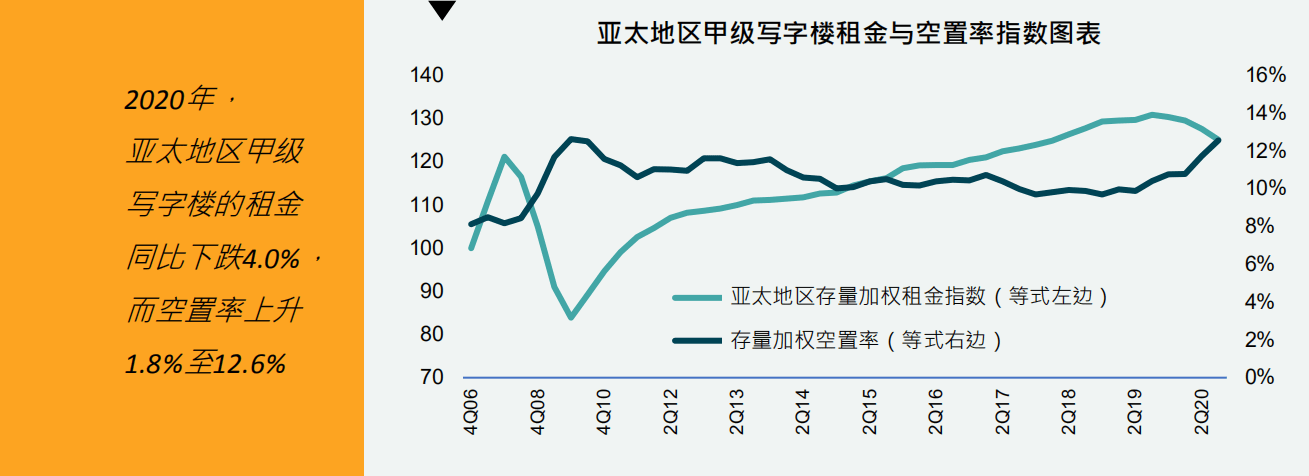 2020年亞太地區(qū)的寫字樓租金同比下降4.0%