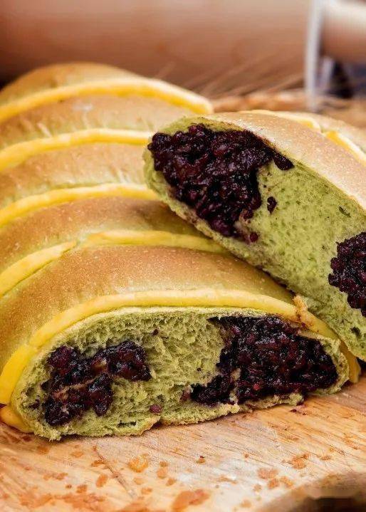 蟹黃肉松面包,質(zhì)地柔軟,咸甜適中,肉松的咸香恰到好處平衡面包的香甜,咀嚼間蟹黃肆意挑逗味蕾;黃油提子面包,是長(zhǎng)富宮飯店經(jīng)典的明星產(chǎn)品,采用優(yōu)質(zhì)面粉和新西蘭黃油搭配進(jìn)口提子干,綿軟的面包,濃郁的黃油,提子的酸甜讓口感一步步升華;抹茶紅豆軟式歐包,抹茶的微苦,恰好和紅豆的甜相互呼應(yīng),軟軟糯糯,口感豐富。