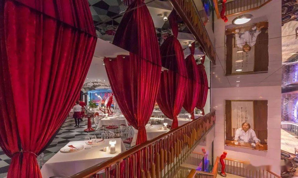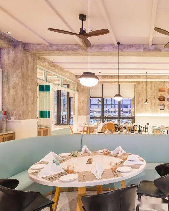 長(zhǎng)長(zhǎng)的戶外走廊墻上懸掛著羅馬石雕,宛如一條時(shí)光隧道,在戶外就餐區(qū)落座,就像登上了通往古羅馬的時(shí)光機(jī)。走進(jìn)室內(nèi)又是另一番風(fēng)情,超挑高的空間寬敞大氣,古典雕塑與質(zhì)樸花磚相互映襯,和優(yōu)雅的酒紅色皮質(zhì)沙發(fā)共同營(yíng)造著復(fù)古氛圍。色彩繽紛的整面墻繪十分吸睛,由各種意大利元素拼貼而成:老海報(bào)、經(jīng)典意大利電影、羅馬數(shù)字……生動(dòng)有趣,令人不禁莞爾一笑。