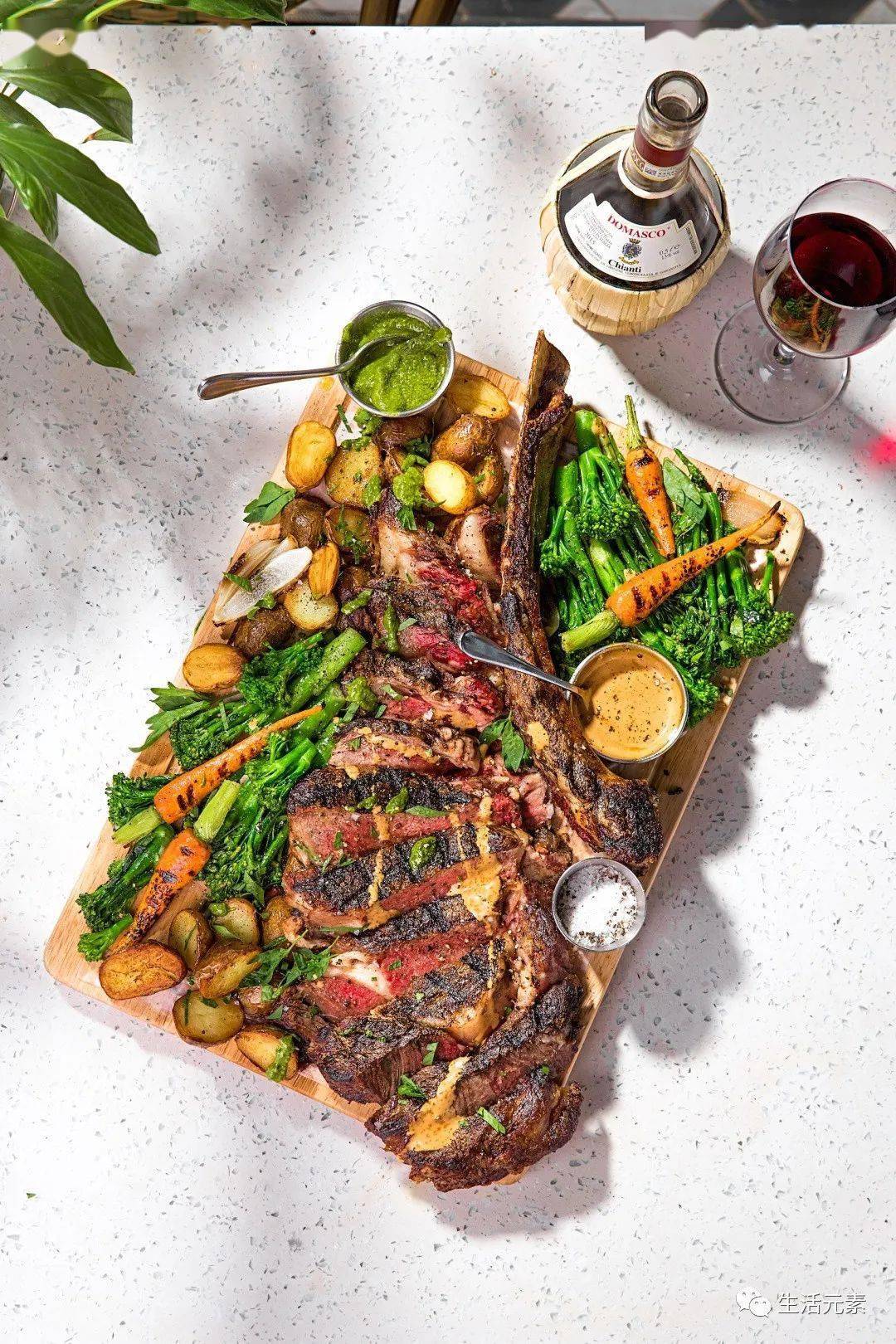 云神秘制牛排 整塊烤制的原切牛排是這里的特色,可以分成5分熟、7分熟等不同程度。來(lái)自于西北天然牧場(chǎng)的牛肉保證了原材料的品質(zhì),傳統(tǒng)的炙烤方式烘托出肉中天然的油脂香味。直接一口吃下去已經(jīng)讓口舌得到了極大滿足,還有三種蘸料:辣椒鹽、綠芥末、蘸汁增添了不同風(fēng)味的體驗(yàn)。