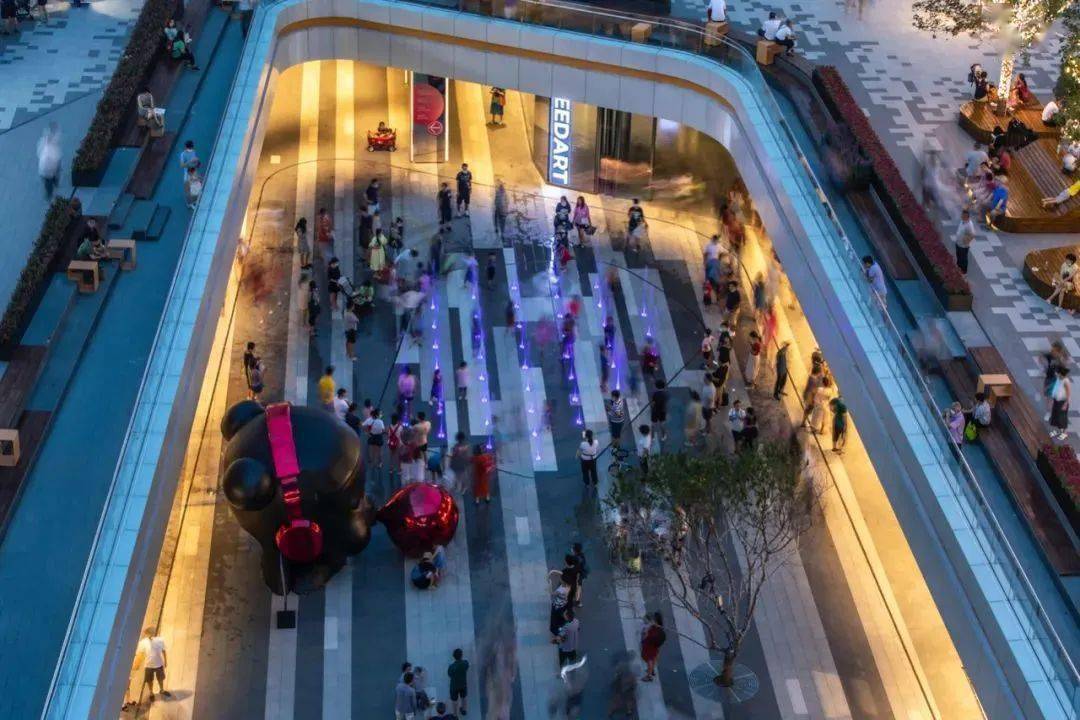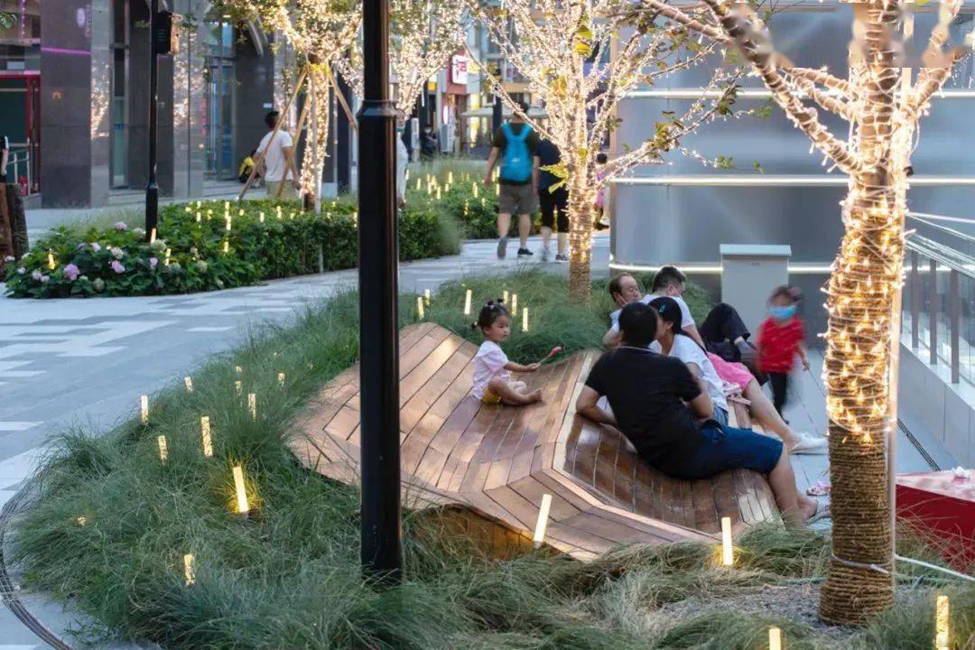 景觀設(shè)計(jì)師通過豐富的專業(yè)技巧、充足的市場(chǎng)信息及 跨學(xué)科知識(shí),研究人的視覺、觸覺、聽覺、味覺及心理等要求,從形式美感、空間美感、時(shí)空美感和意境創(chuàng)造中進(jìn)行商業(yè)景觀設(shè)計(jì),將標(biāo)志性構(gòu)筑物、鋪地、游憩設(shè)施、街道小品、特色照明、植物配置等多種景觀要素巧妙組織在一起,不僅可以為商業(yè)本身賦能,吸引人流,更能進(jìn)一步提升公共空間品質(zhì),打造具有吸引力的城市客廳。